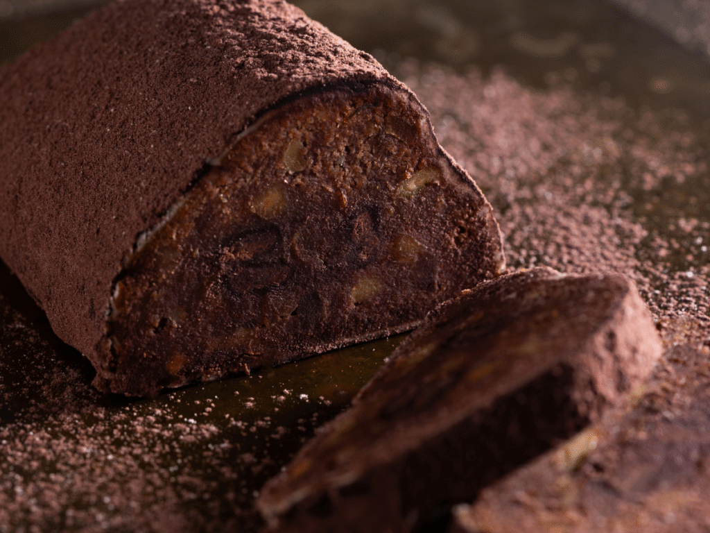 カカオ分70%のショコラノワールを使用し、たっぷりのクルミやマカダミアナッツ、オレンジマーマレードを加えて焼き上げたカカオの味わいを楽しむシュトーレンショコラです。